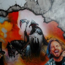 sowohl als Illustrator, Schnellzeichner und Karikaturist, Wandmaler, Auftrags – und Airbrush-Künstler als auch als Schlagzeuger (natürlich!) bei den Burning Hobos.